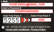 1. Click the cover at your left. 2. On the page that appears enter your email adress, create a password and enter the Free Pass # shown. See example below: